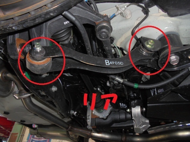 アームやロッドブッシュの1Gによる締め直し作業。