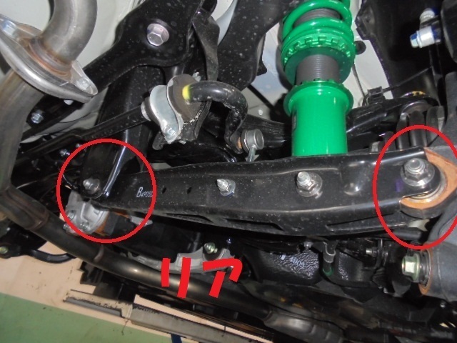 ローダウンの状態での1Gにてブッシュを締め直す事で可動領域が広がり・・・