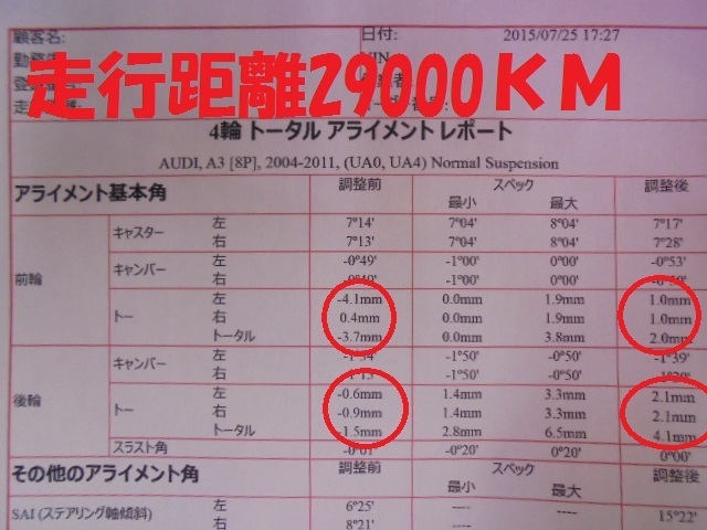 4輪アライメント調整も同時作業しました。