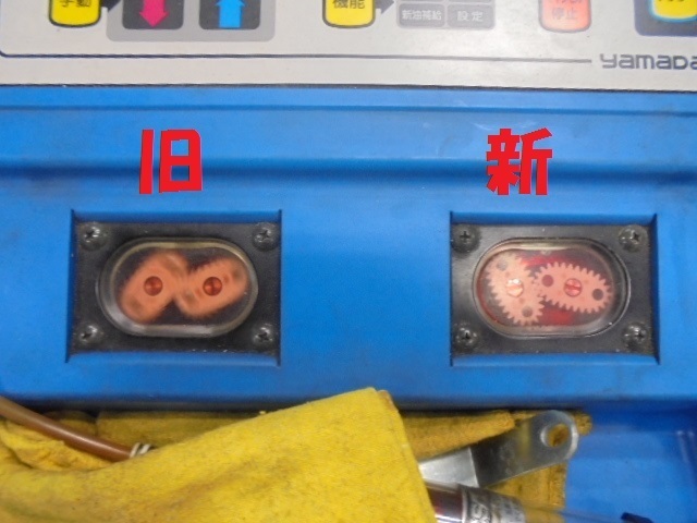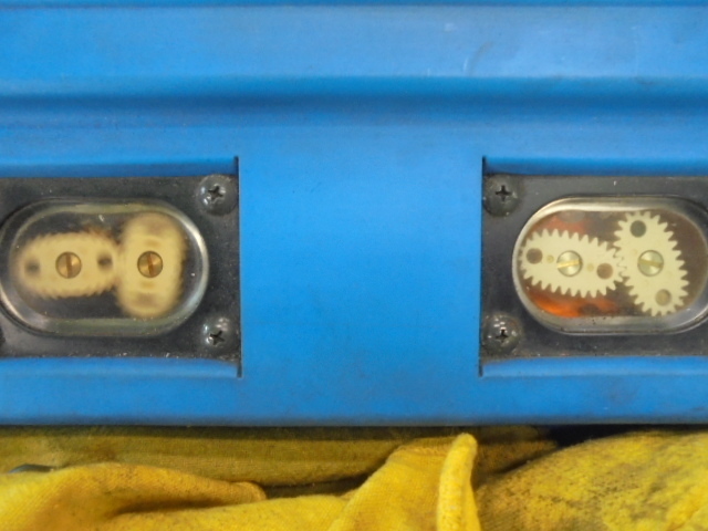 チェンジャー向かって左の小窓が廃油。右が新油。