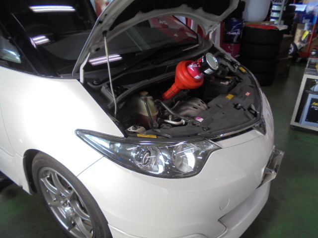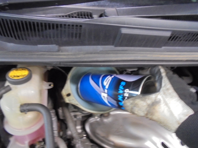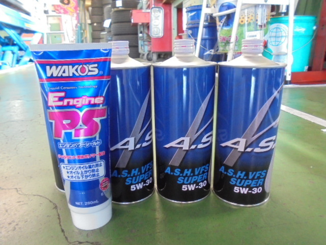 今回は、オイル漏れの症状が発覚した為青缶+漏れ止め剤に変更。