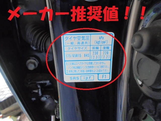 中でも…フロントタイヤの内圧は230kPaが指定!!!!