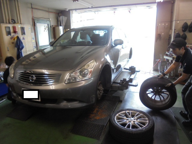 V36スカイラインがタイヤ交換にて入庫致しました。