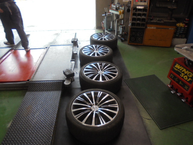 E51エルグランドのタイヤ交換&4輪アライメント調整です!