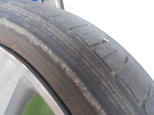 側面には、ゼロ内圧で走行した時に出るこ「タイヤコード切れ」の証・・・