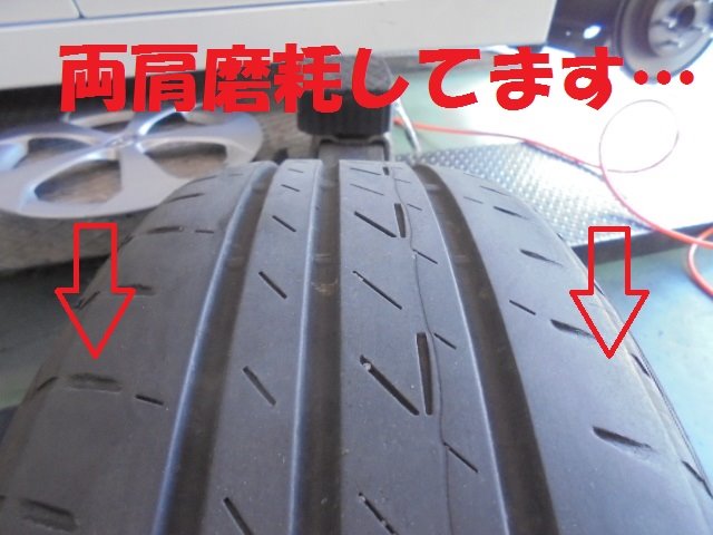 プリウスの15インチサイズでは、特徴的な両サイド摩耗。