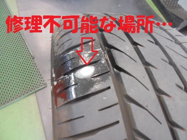 溝が残っていても、ショルダー部のパンク修理は直せません。。。
