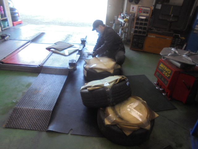送られてきた夏タイヤを、装着前に交換です♪