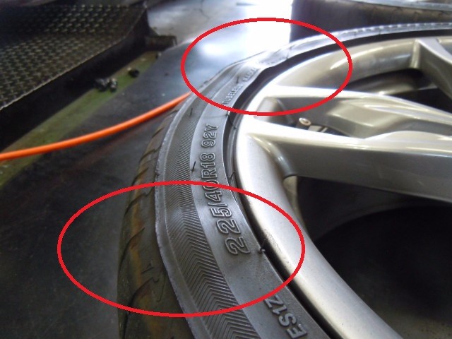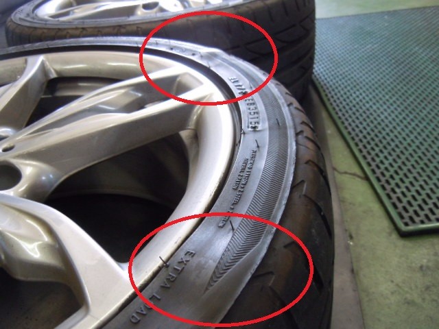 タイヤのサイド部に5ヶ所もの膨らみを発見!!!