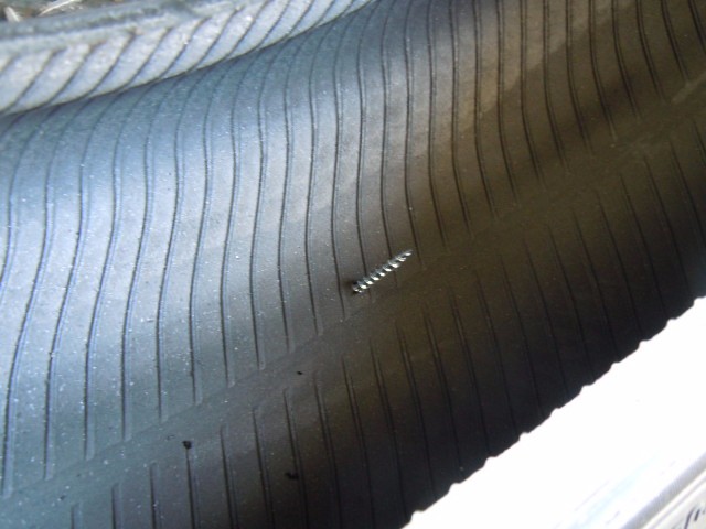 左リアタイヤにネジが刺さっておりました。。。