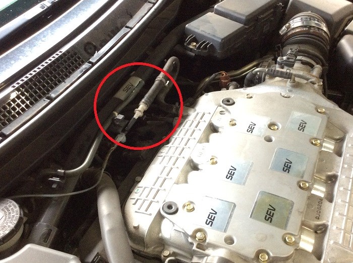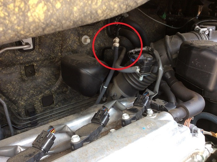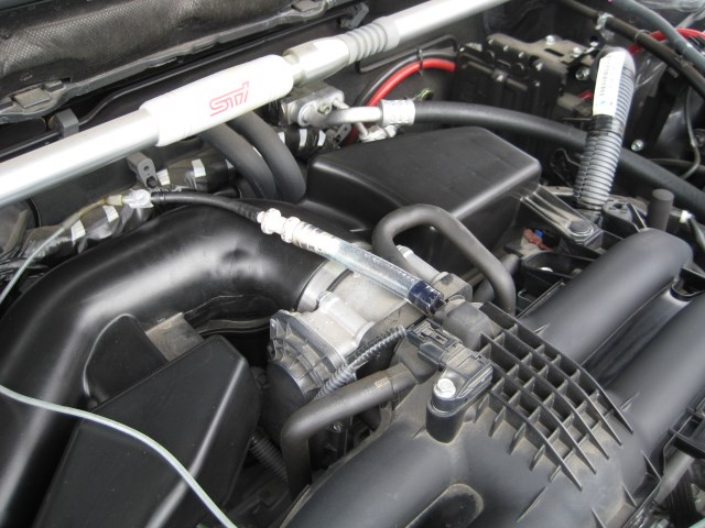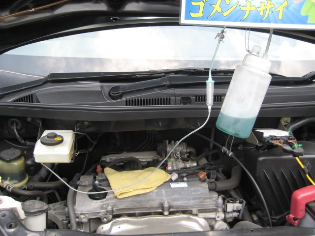 スロットルボデーの後ろから、液剤を吸引させ・・・