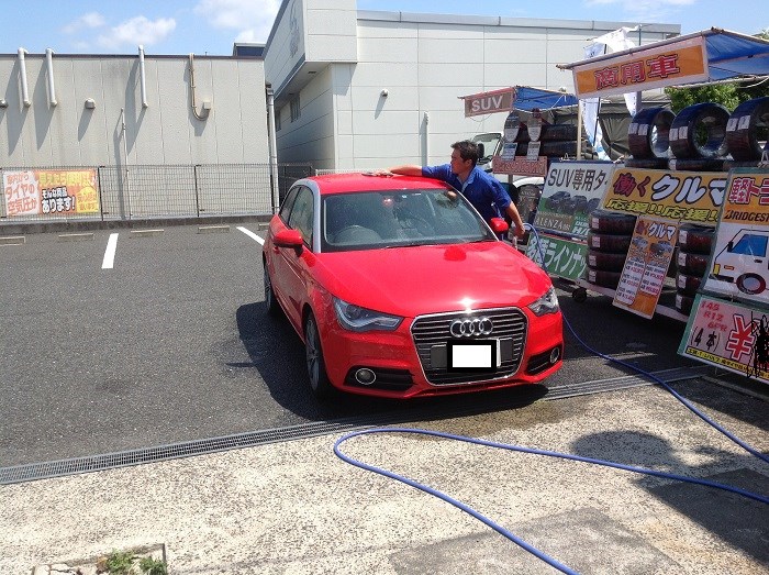 ホイールやガラスまで、、、丹念に手洗い施工!