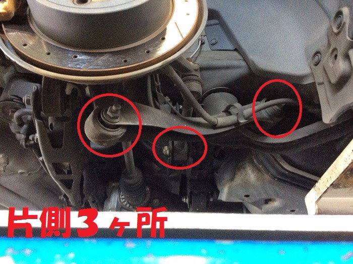 フロントはロアアームの1ヶ所ずつです!