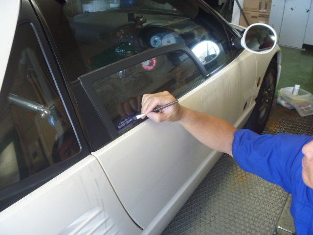 専用シートをガラスに貼り付け・・・・・