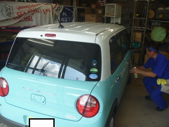 ボデー(鉄・アルミ)塗装部と樹脂部はコーティングの液剤を使い分けるそうです!!!