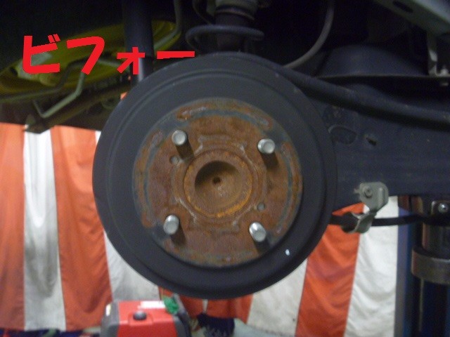 ハブ周りの防錆施工。