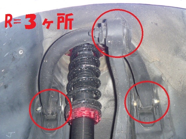 アッパーアームの3ヶ所!