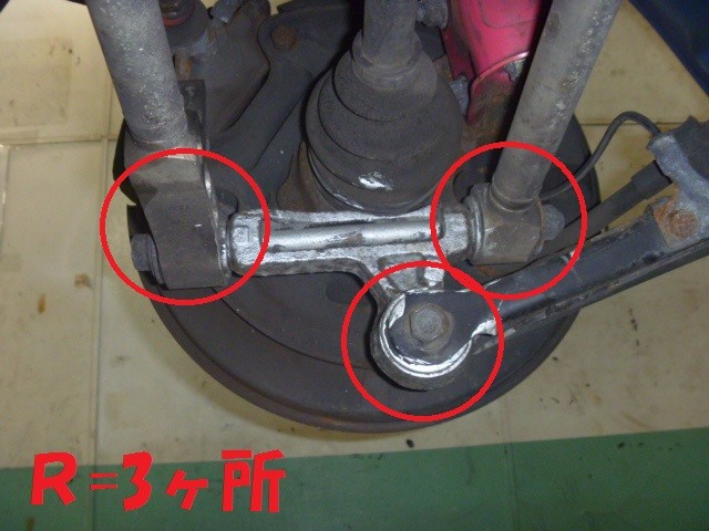 各アームのトータル14ヶ所のブッシュを締め直しをおこない