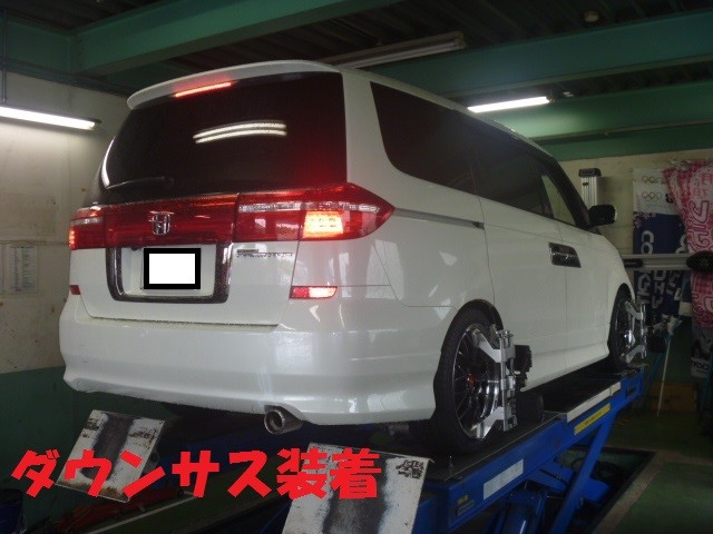 ダウンサス装着後の4輪アライメント調整。