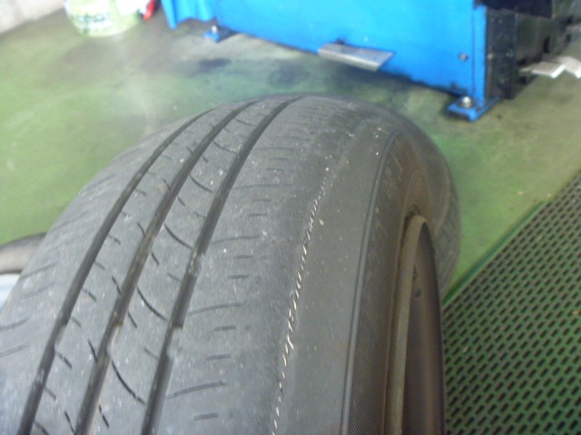 タイヤの偏摩耗+年数経過によるヒビ割れの為に交換。