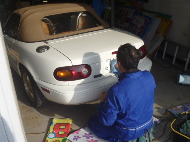 元々、純正品が白っぽい黒のロードスター。。