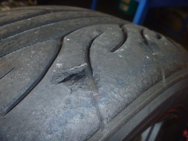 まだ溝は残っていますが、経年劣化によるヒビ割れによって本来のグリップ力が発揮できず。。。