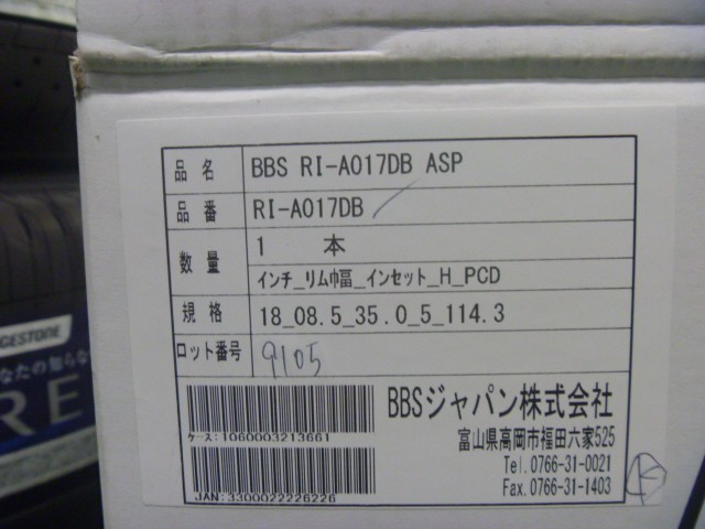 アルミ : BBS RI-A 18×8.5 5/114 +35