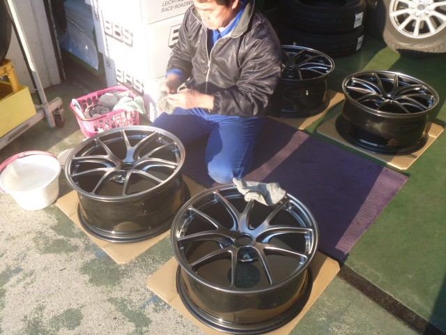 1本1本隅ずみまで丁寧にホイール専用のガラスコーティング剤を