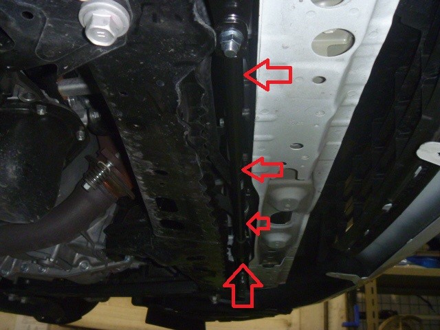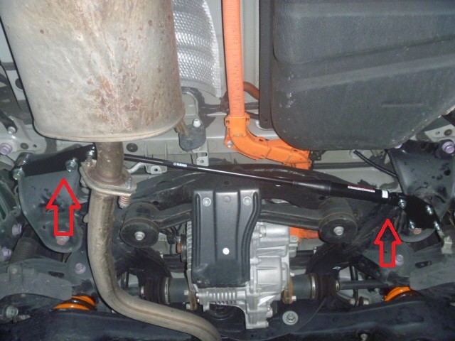 フロントはサスペンションメンバーのサポート部の前方の