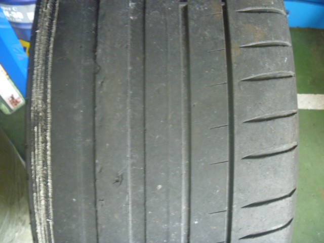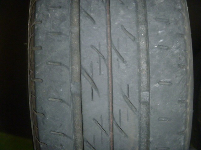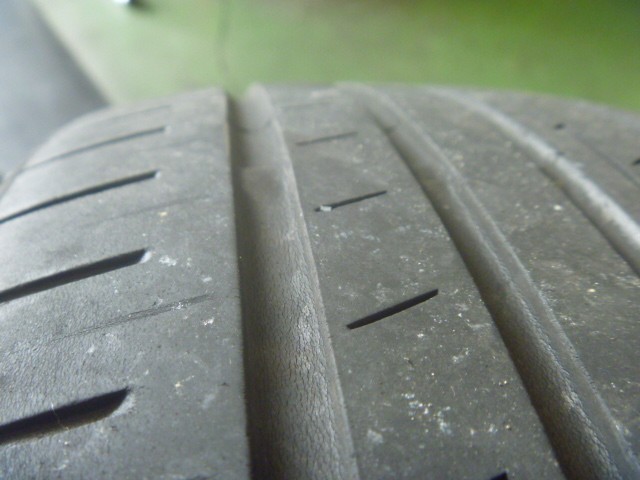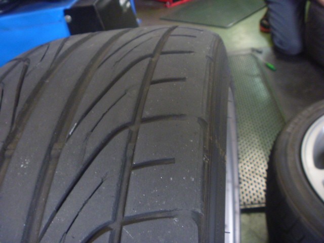 年数経過によってゴムが硬化、全体にクラックも入り、残溝も残り僅かでした。。。