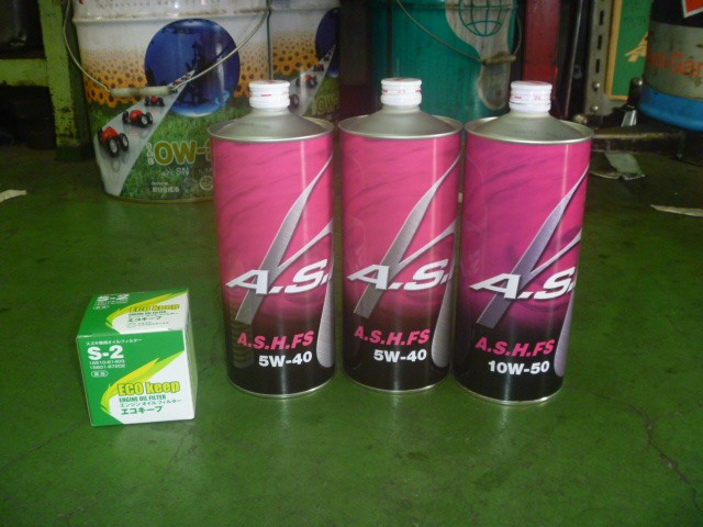 エンジンオイルもASHのラインナップの中で1番ハイグレードのFSE(通称:赤缶)を使用し、