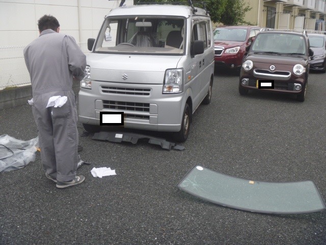 車のフロントガラスは接着剤(シール剤)で、窓枠に嵌まってくっ付いているだけ!!
