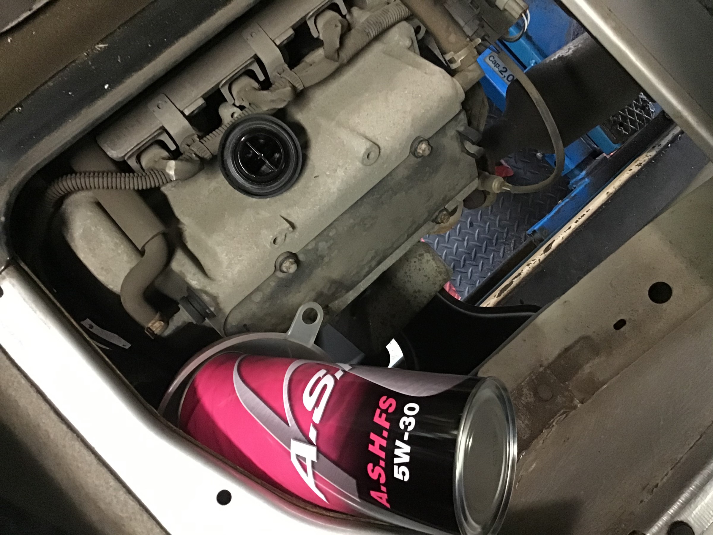 抜き終えてオイルフィルターを交換したら新しいオイルを♪