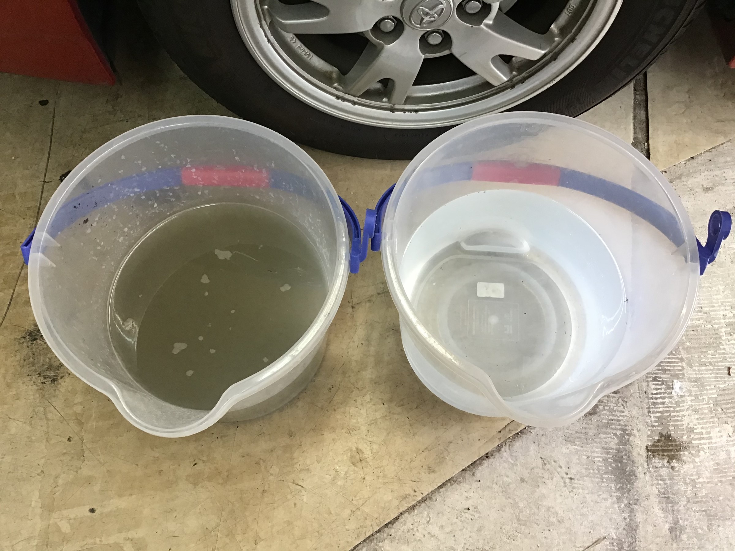 右が最後の仕上げで流した後に出てきた水。