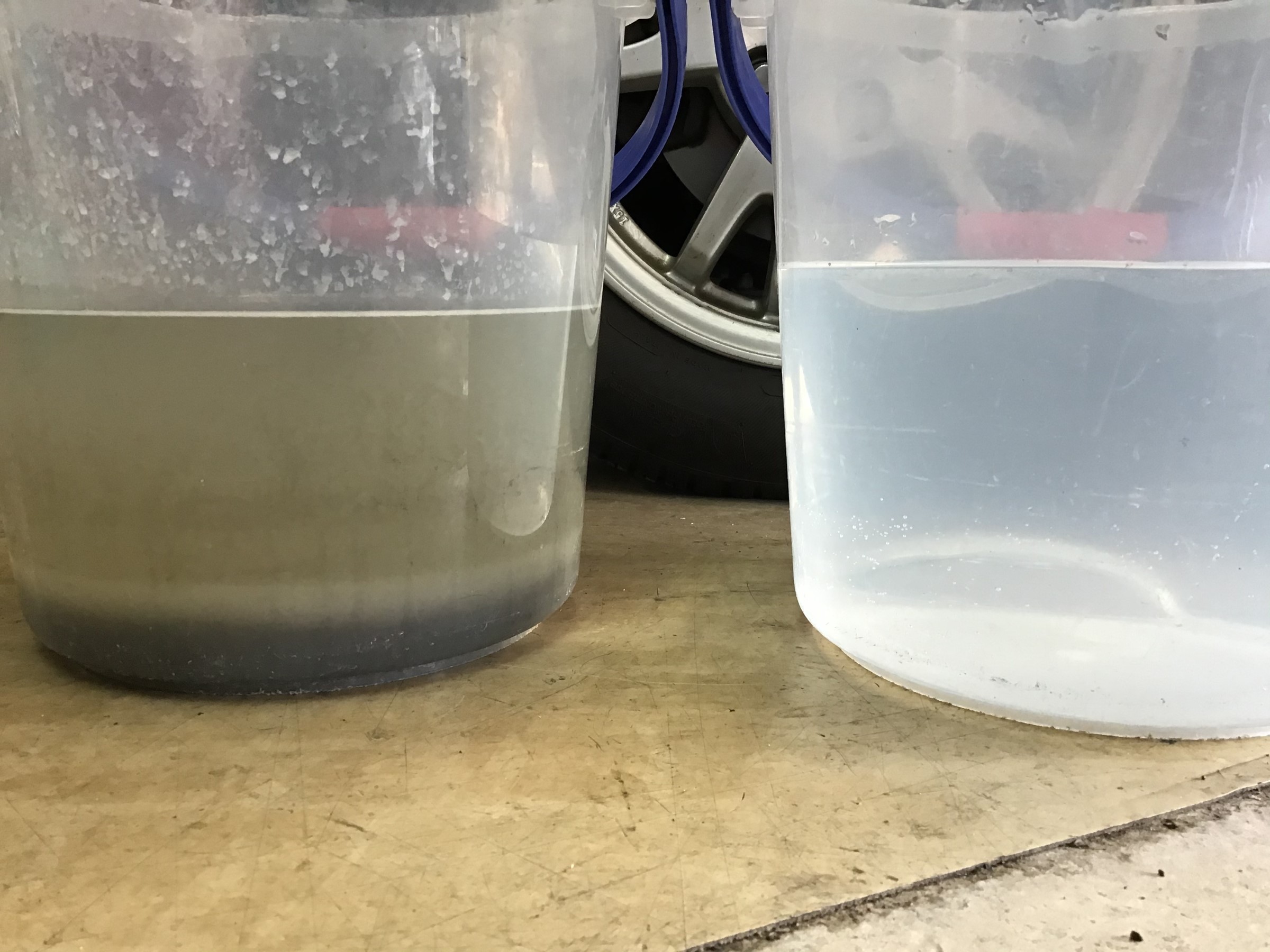 写真左が洗浄してでてきた水。