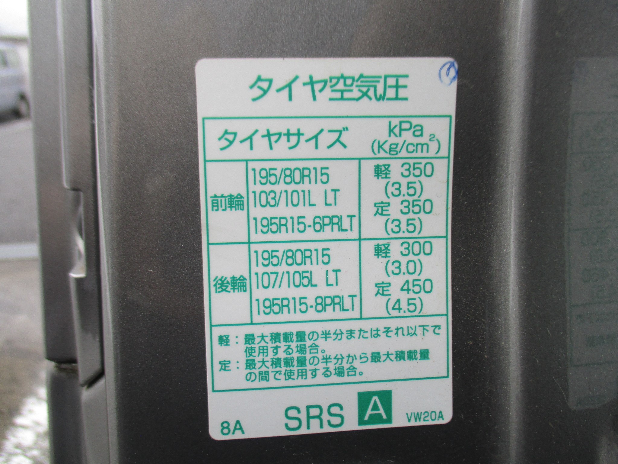 前輪 ⇒ 195/80R15 103/101L 後輪 ⇒ 195/80R15 107/105L