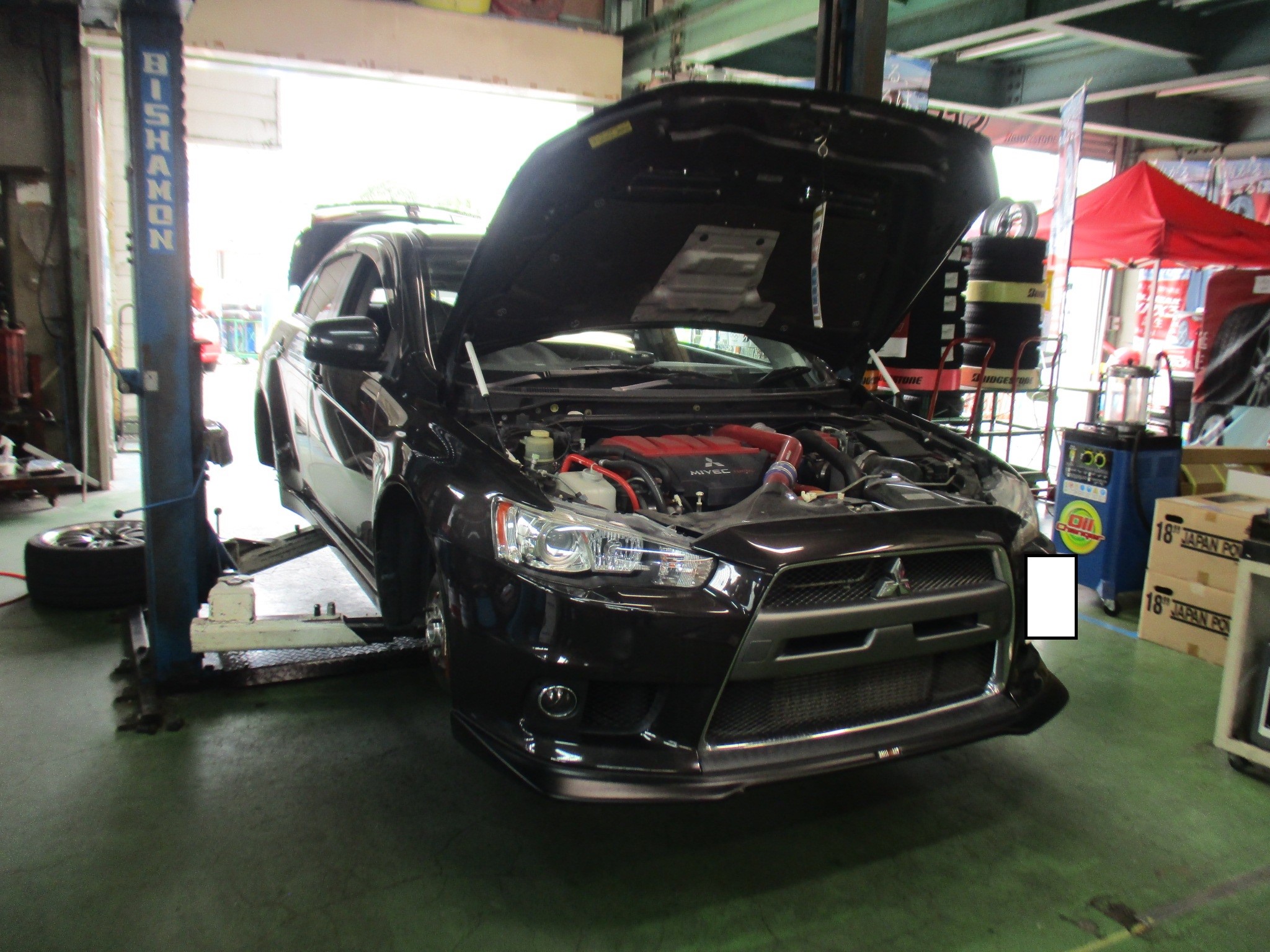 FFベースのエボⅩですので、摩耗タイヤはリアに回していたので、リア×2を交換。