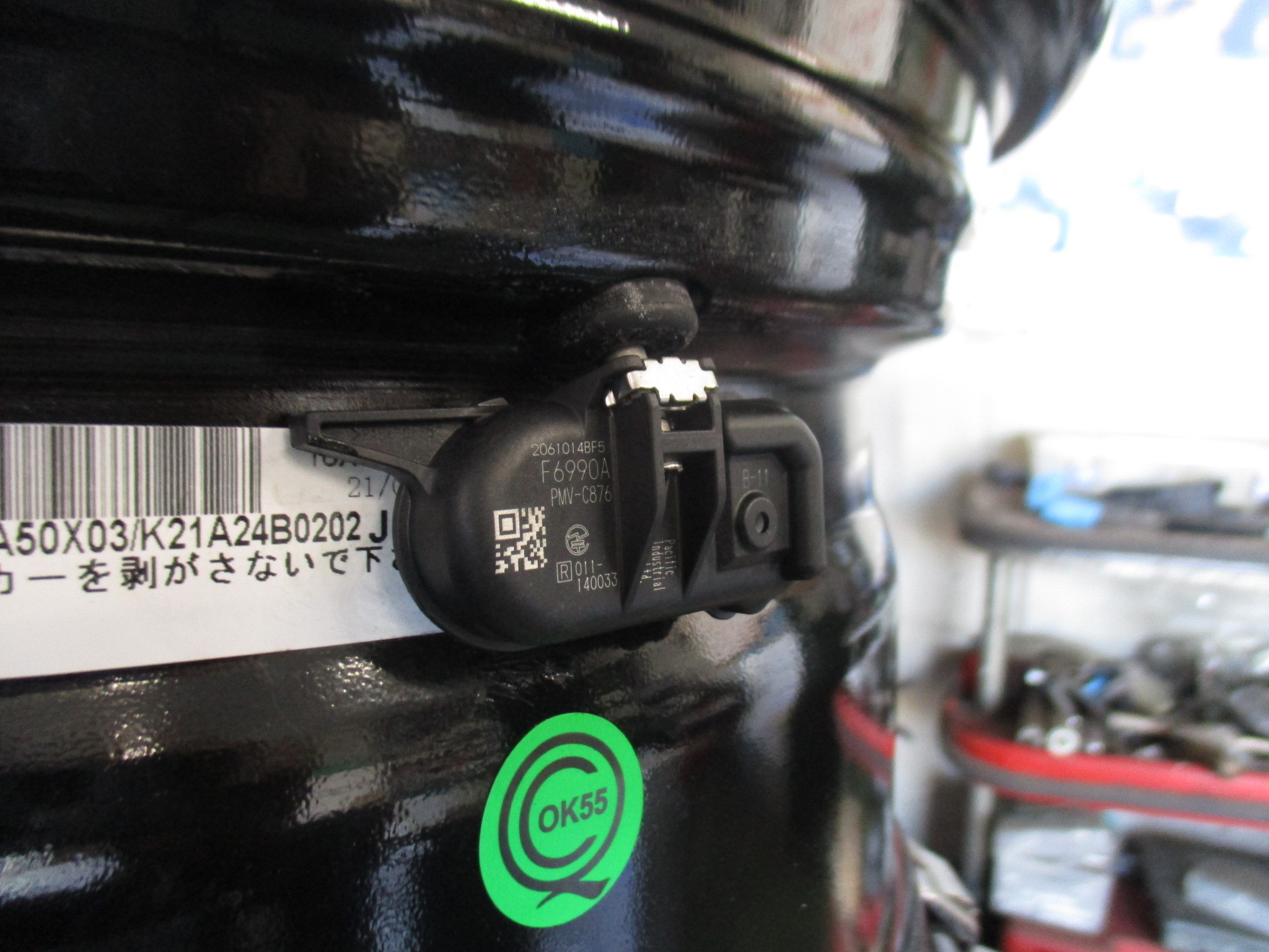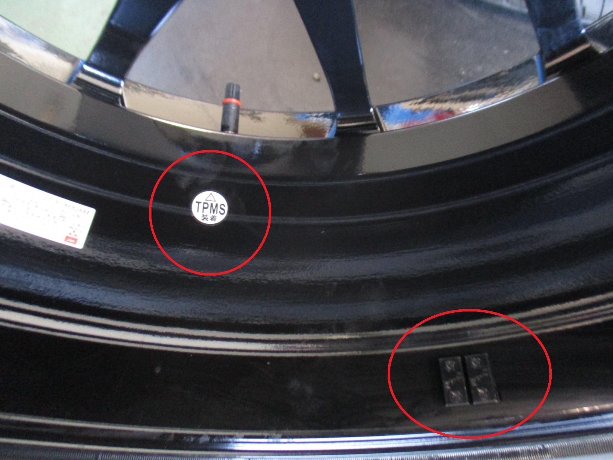 ホイール内側には、センサー装着の証。
