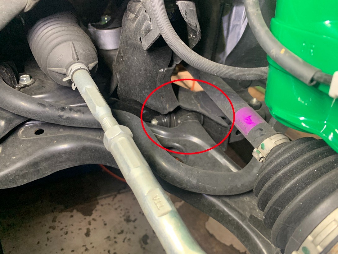 ハブとフェンダーの距離を1G状態にしてロアアームを持ち上げて