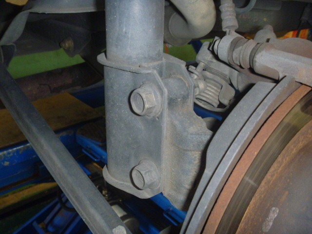 ストラットとナックルを止めている上のボルトを