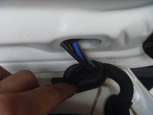 ここも大手カー用品店ではなかなかしない配線のトランクゲート内に通す作業。