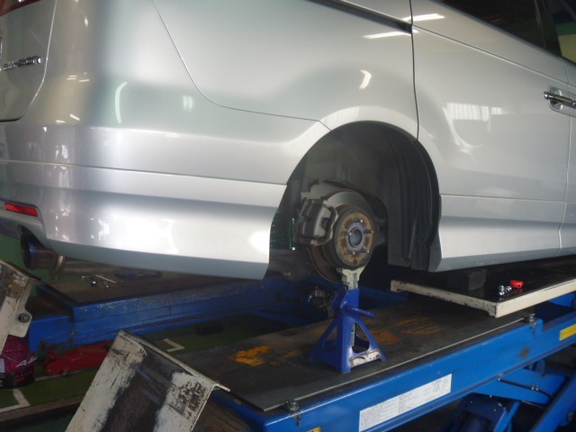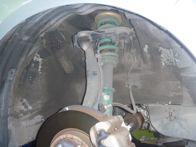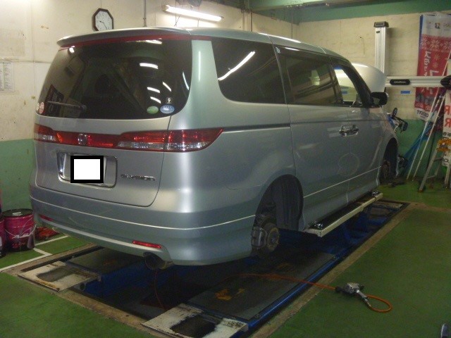 持ち上げ、点検した結果、車高調が装着されており、ブッシュ等々のヘタリや硬化も見られましたので