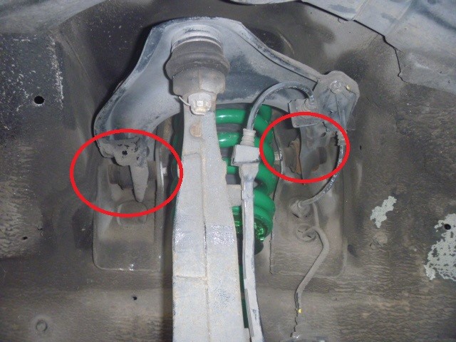 リア後ろ側はロアアームのナックル側 1か所
