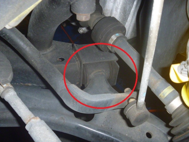 フロントはロアアームの根元のブッシュ1カ所を緩めて、