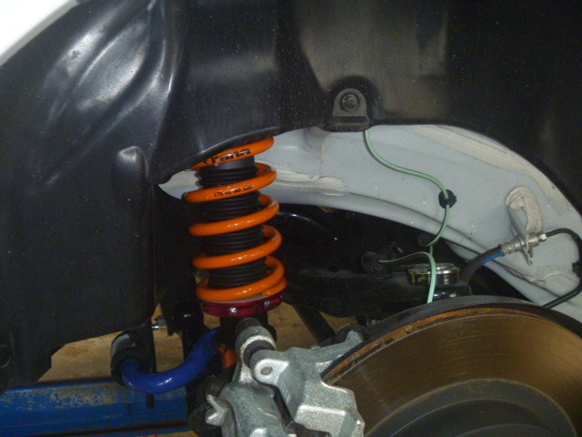 Aragosta車高調はアルミ製のアッパーマウントなどを使用しているので