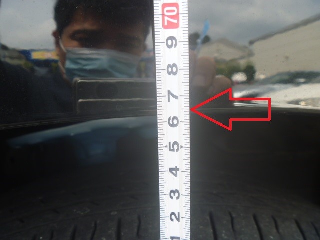 アルミホイール下端~フェンダーアーチトップまでの距離は上の画像の通り。