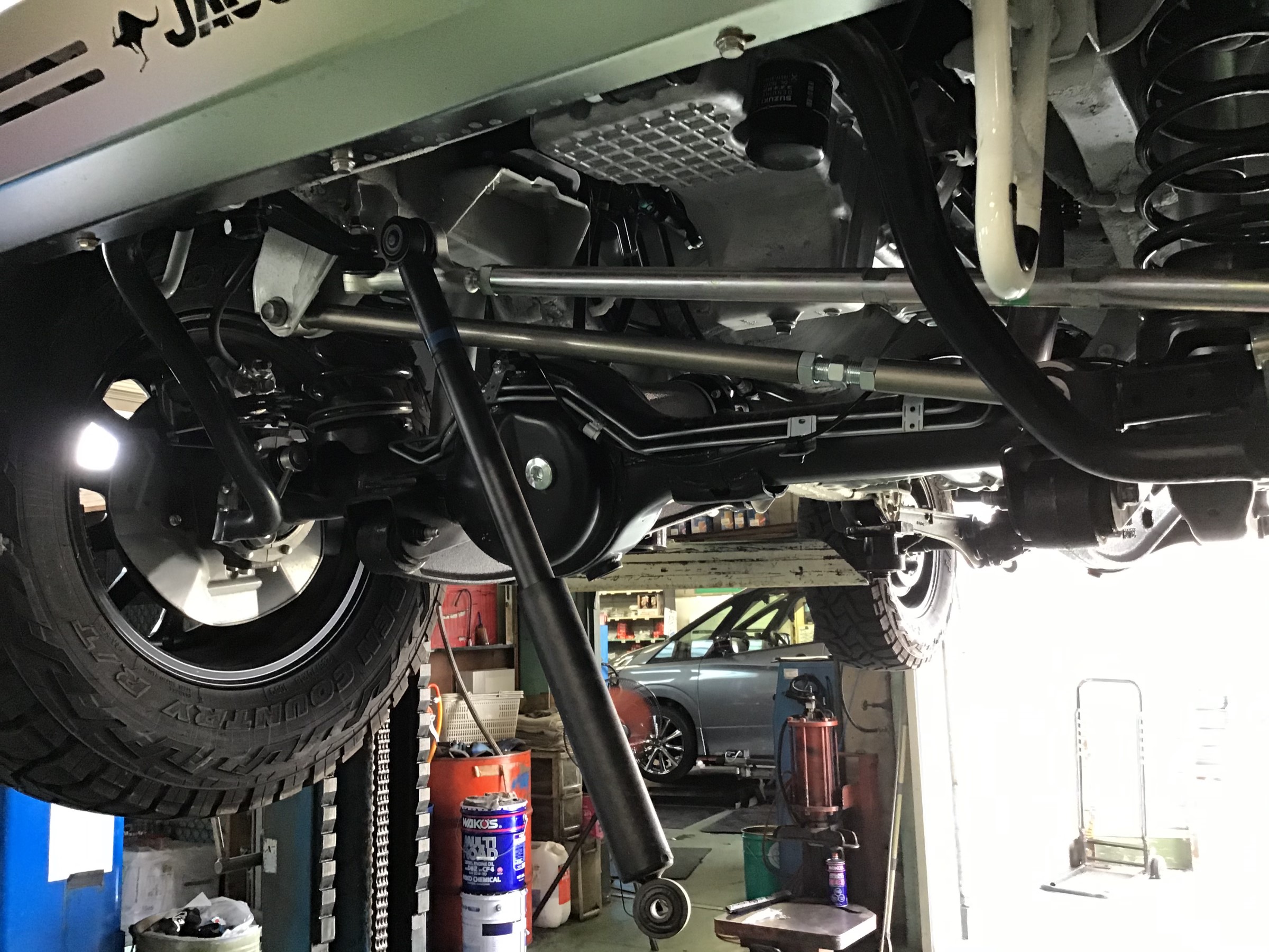 フロント下廻りには3本のロッドが見えますが、