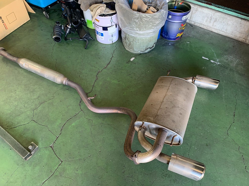 重量のある純正マフラーを摘出いたしました!!!汗