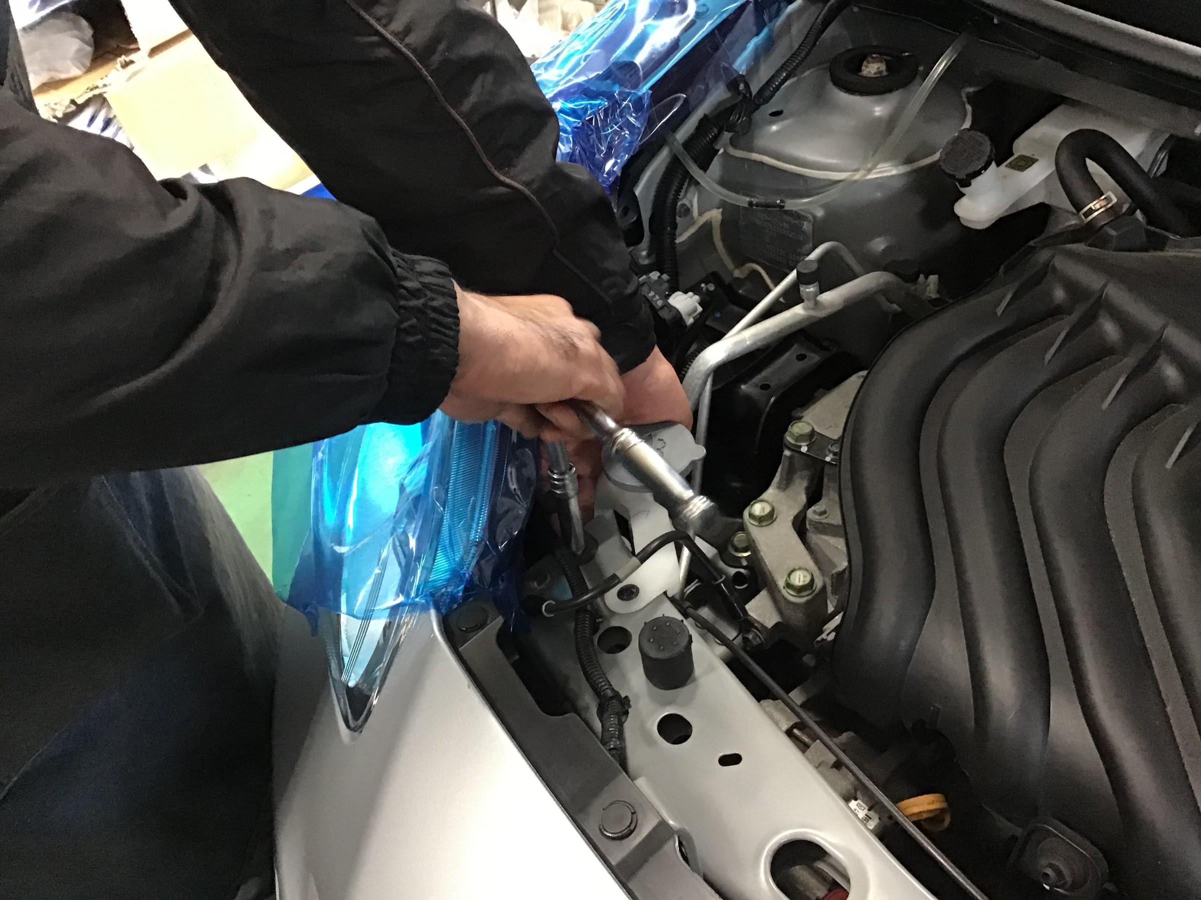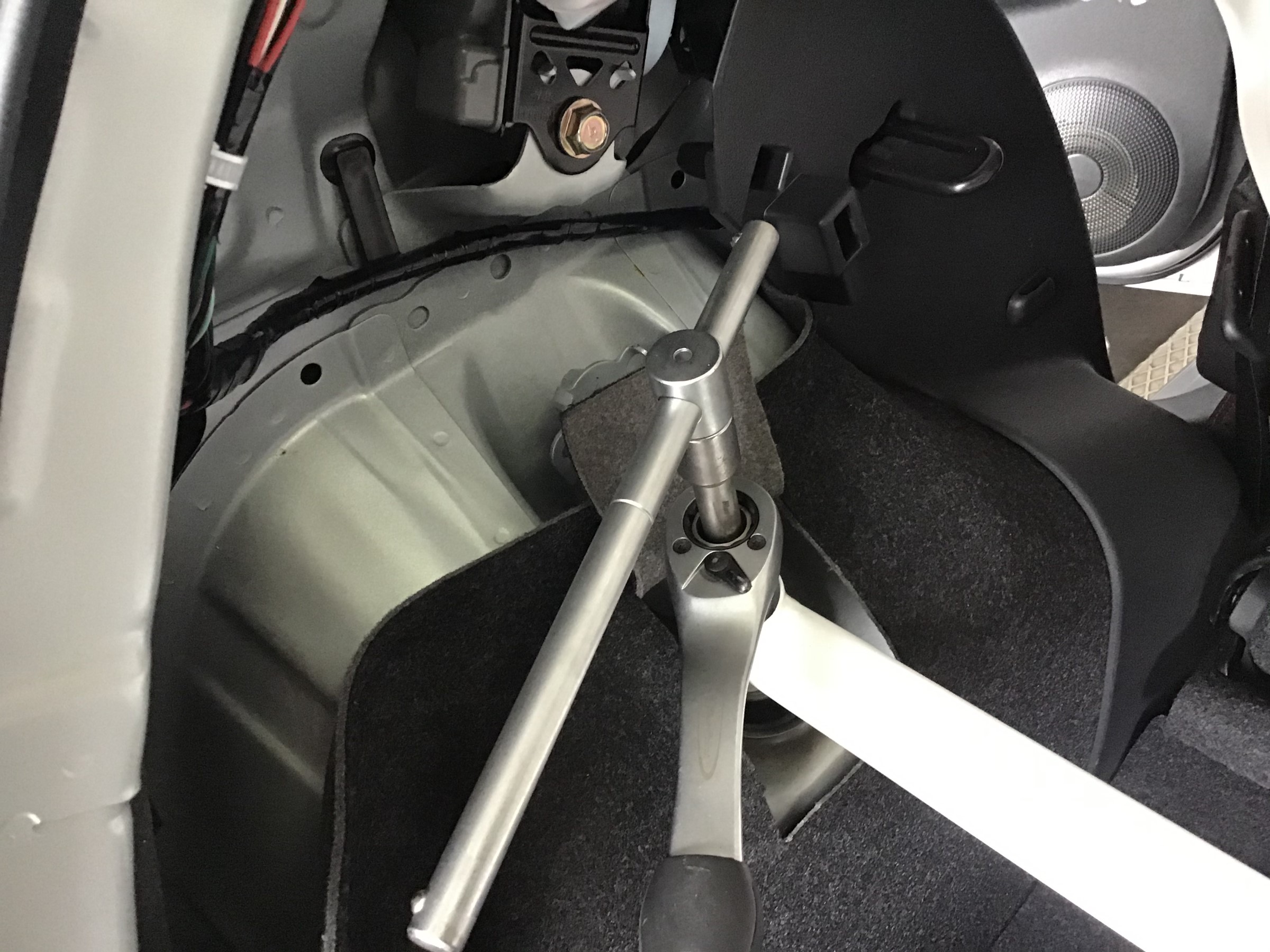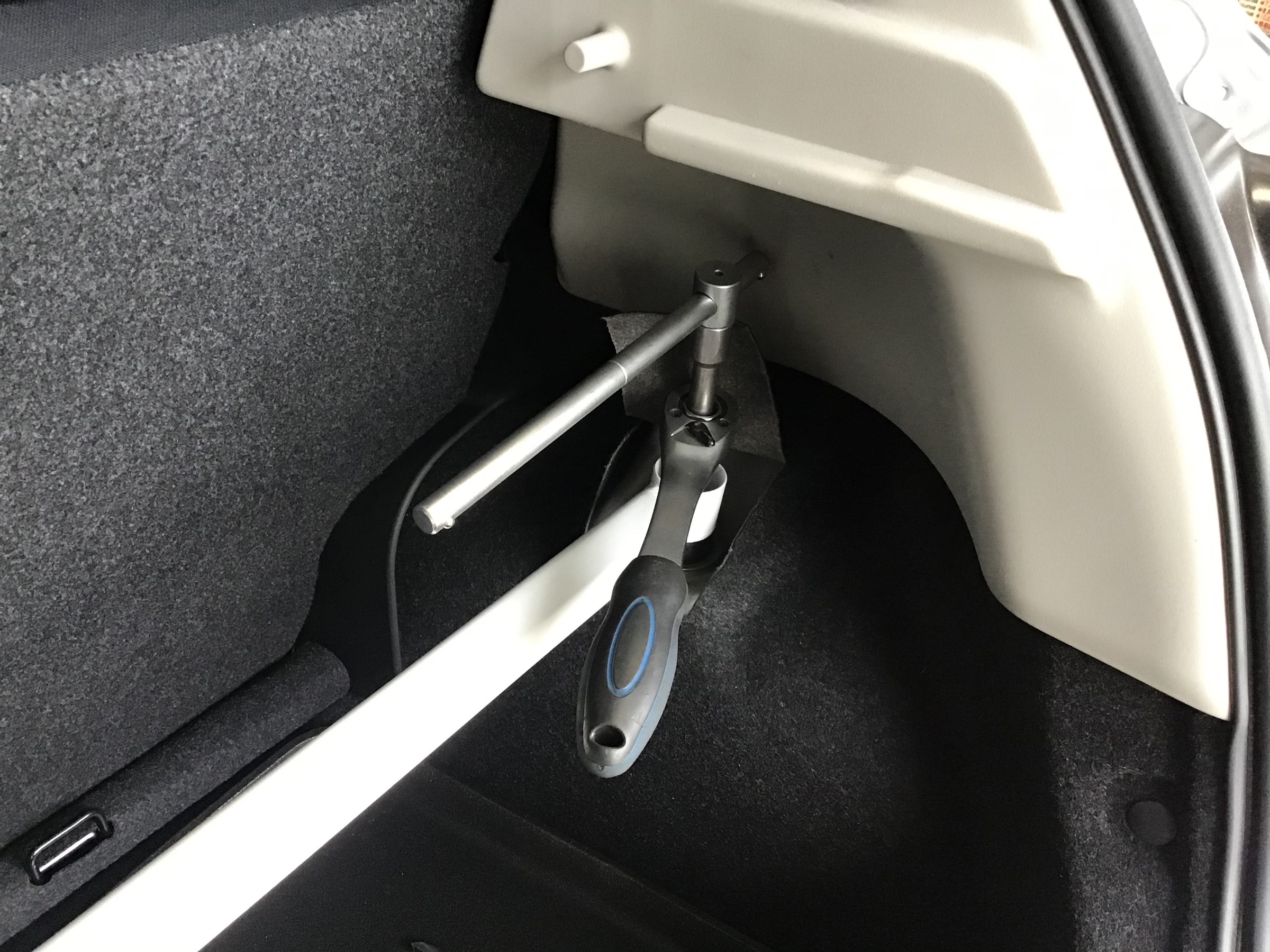 助手席側の内張がでっぱってるため工具が入らず