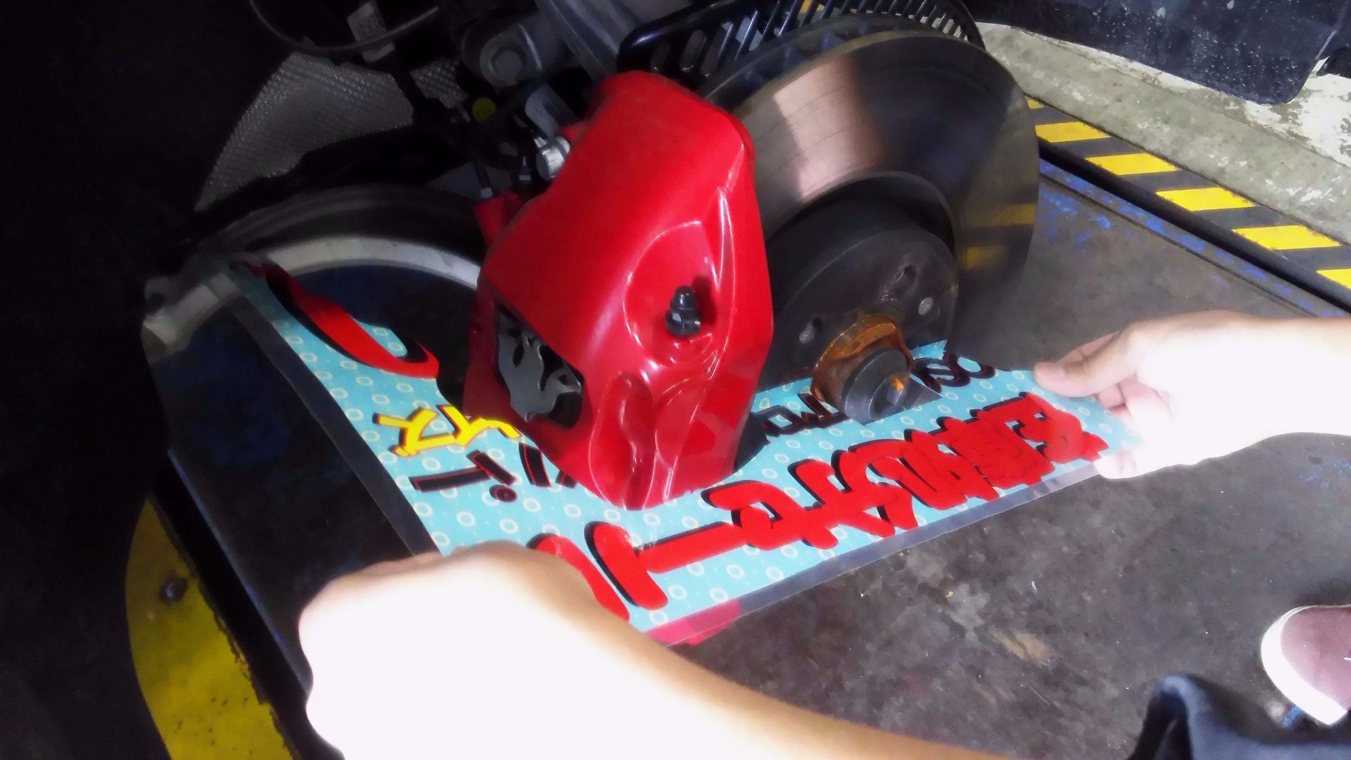 ブレーキャリパーを かわしています。